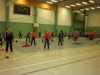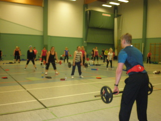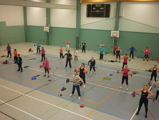 Naistenpäivän jumppa 8.3.2013 liikuntahallilla. Ohjaajana Sami Kohvakka.