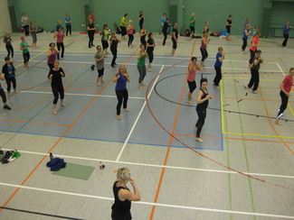 8.3.2014 Naistenpäivän jumppa PILOXING- JA CORE + VENYTTELYJUMPPA liikuntahallilla klo 16-18. Ohjaajana Eveliina Hall Mäntyharjulta. Jumppaajia 54.