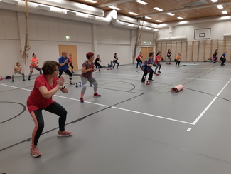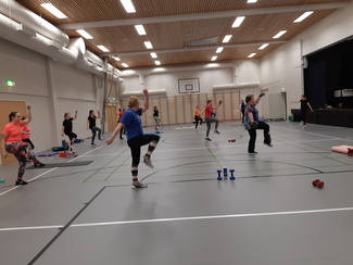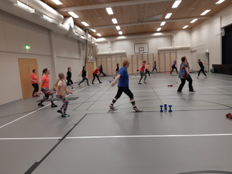 Naistenpäivän jumppa 8.3. Ohjaajana Sonja Nokelainen. Mukana 18 jumppaajaa. Kukkakauppa Suopursu lahjoitti jokaiselle jumppaajalle ruusun.